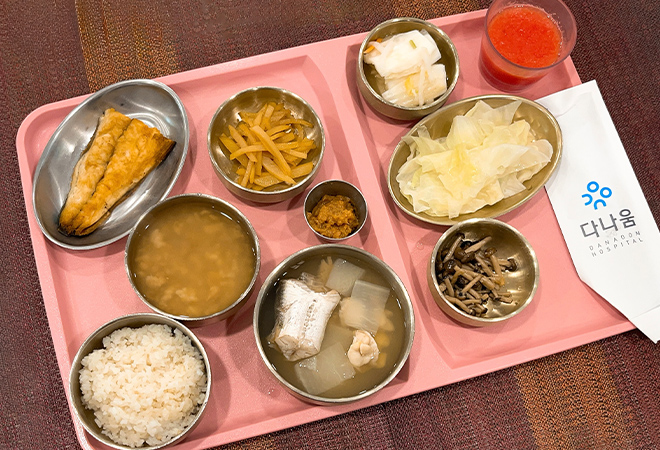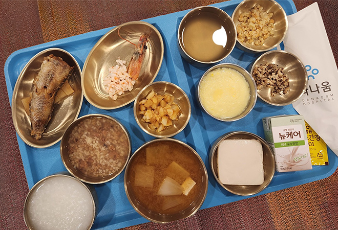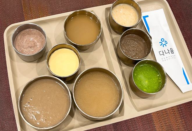 위절제식 식단은 미음 -> 유동식 -> 진밥 단계별 식이로 이루어집니다.